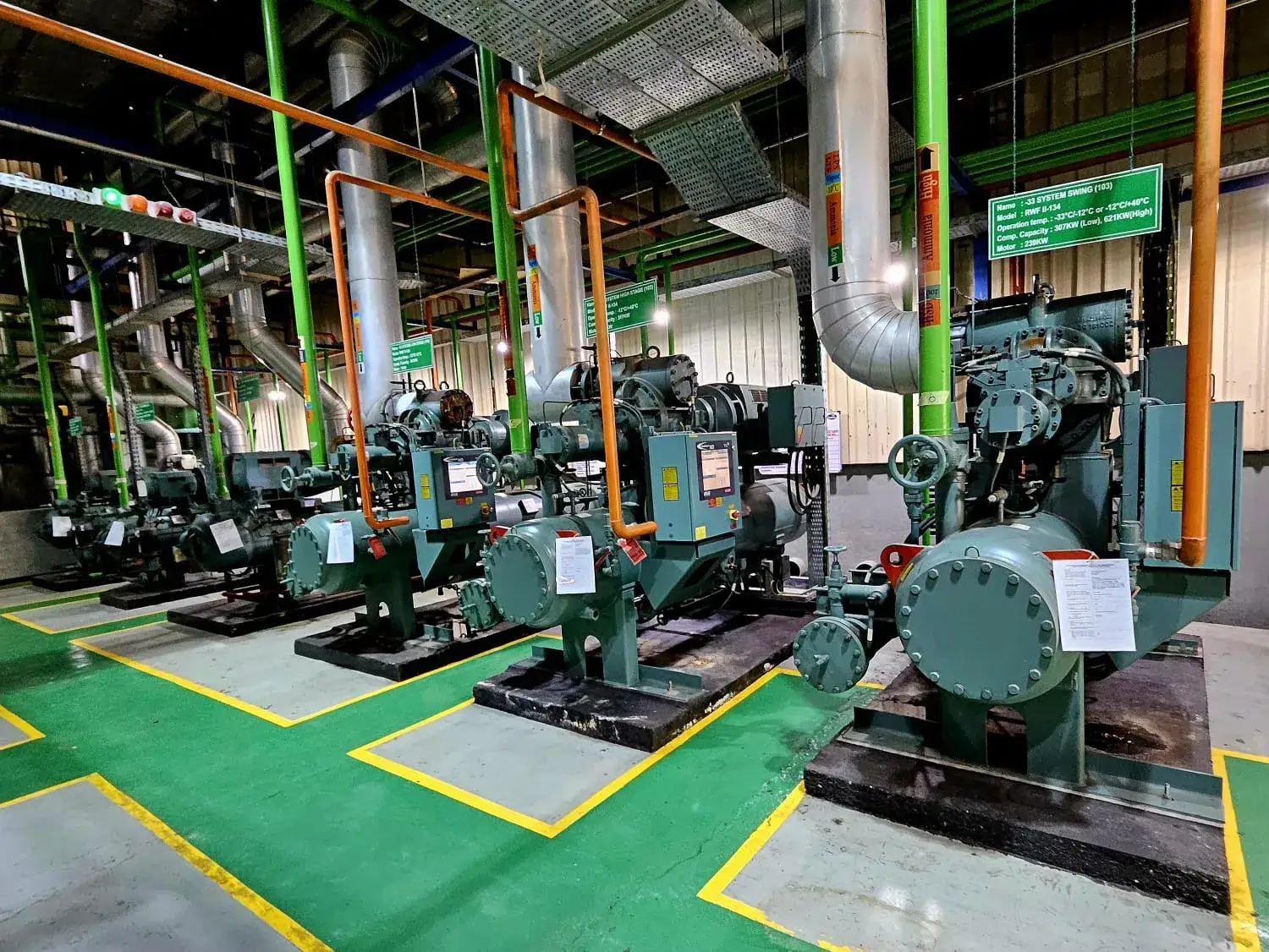 A frozen food production facility required comprehensive visibility over its critical cold chain infrastructure and production line status. Manually monitoring numerous chillers operating at different temperatures (-37°C, -47°C, chilled water) and key production machines was inefficient. This lack of centralized, real-time data posed a risk to product quality, energy efficiency, and timely response to equipment faults.